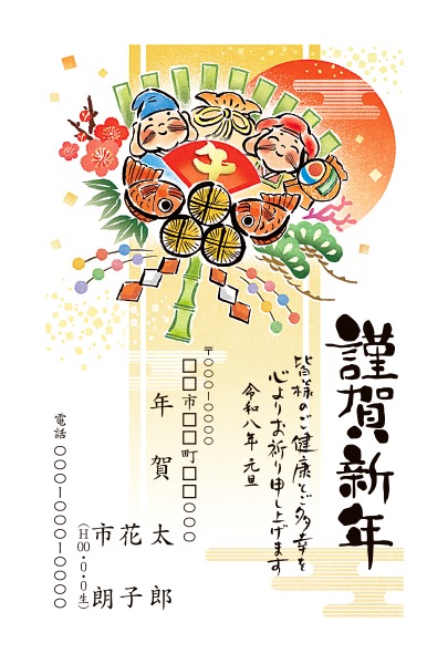 - 住所・氏名の位置・文例は見本通り。移動・変更は出来ません。